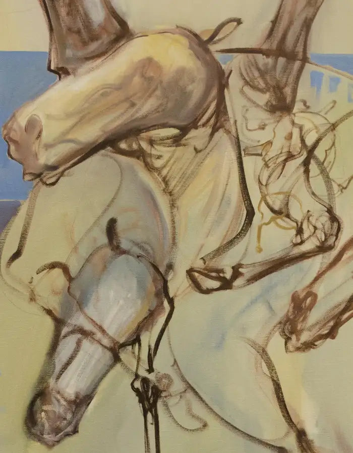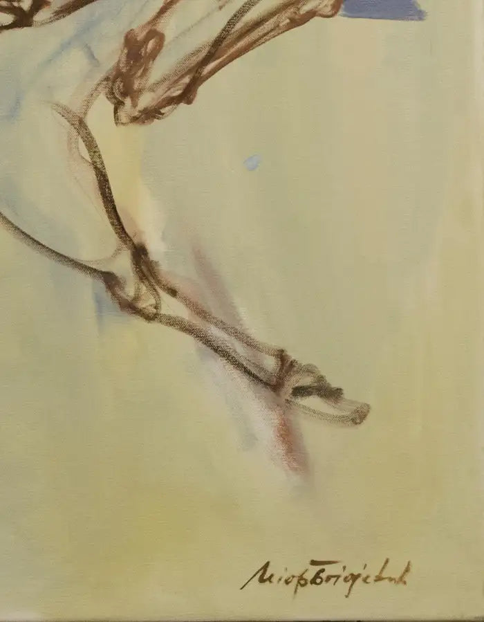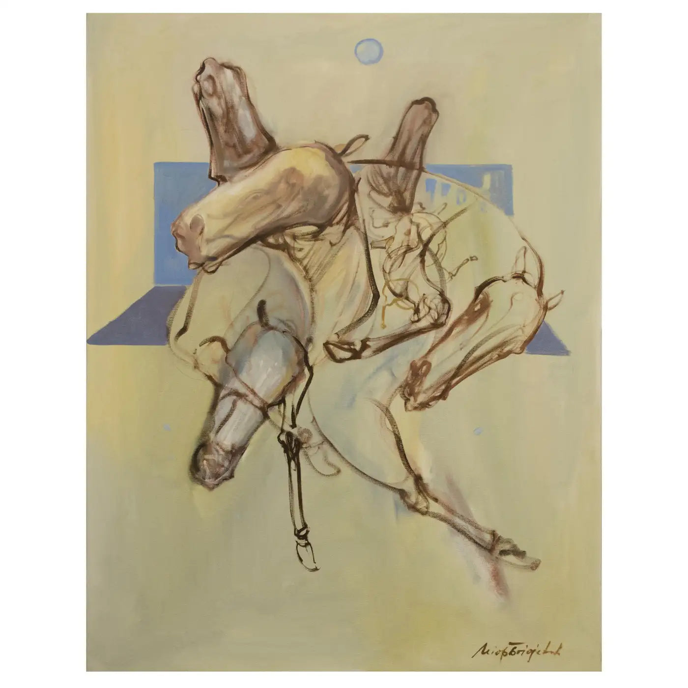 An abstract oil on canvas painting titled " Moonlight Sonata" by the prolific contemporary artist Igor Bogojevic ( Montenegro Born in 1980 ). The Painting features horses which has been Igor's signature work since the Start of his career with geometrical shapes. A lovely piece to decorate your wall and add a touch of artistic flair to your living.