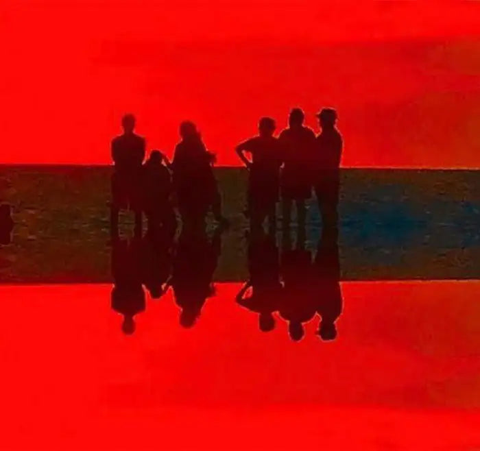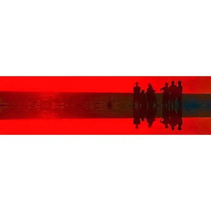 The endless Summer by the contemporary artist Marc Vandermeer ( American, 1950's) is inspired by a photograph of people silhouetted against a setting sun in 2020 at Lido beach, Sarasota, Florida. the art work is made into a three -color photo silkscreen. The viscosity of silkscreen ink gives it much more power than that of an inkjet or laser-printed image. The art work is signed by the artist. limited signed twelve editions.