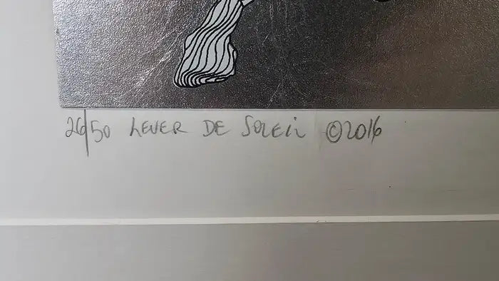 This exquisite piece, titled Lever de Soleil by Guillaume Azoulay ( Moroccan-French 1949) , is a limited-edition etching, numbered 26 out of 50 and dated 2016. The etching captures Azoulay’s signature style with its intricate line work, fluidity, and dynamic movement, beautifully portraying the artist's fascination with energy and form.