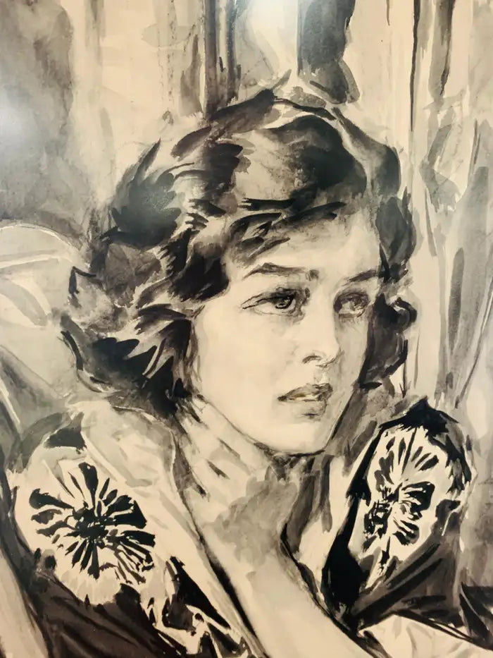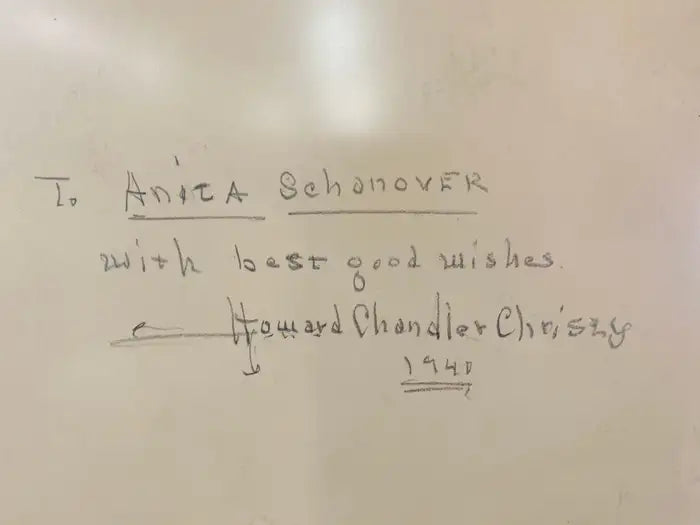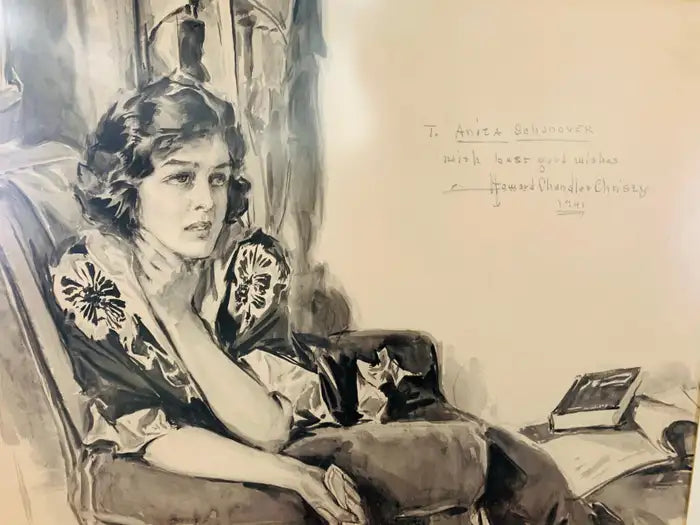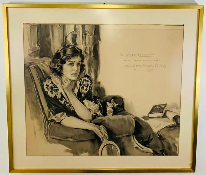This watercolor portrait was made by Howard Chandler Christy (1873-1952, American)and dedicated to his long time friend Anita Shonover in 1940. The portrait is signed dated and inscribed " With best good wishes". The portrait came directly from the family of Anita Shonover along with multiple letters and cards written by Howard to Anita. The original letters and cards are included per request.