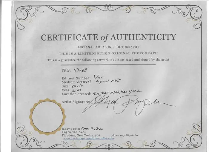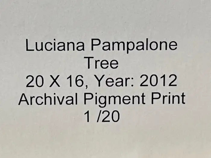 An impressionistic photography archival pigment print titled "Tree" by Luciana Pampalone ( American, 1961) limited edition 1/20 in black and white, framed and matted. The print comes with a certificate of authenticity.