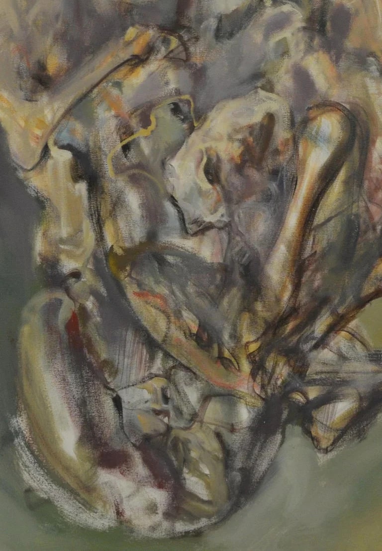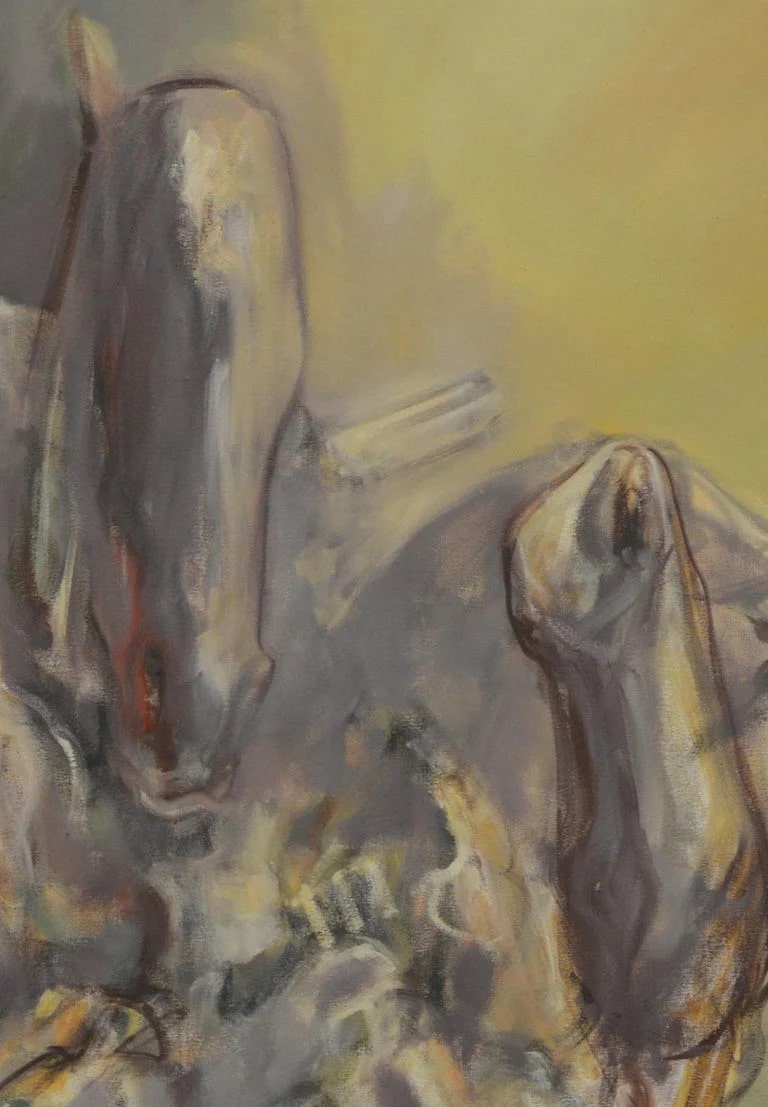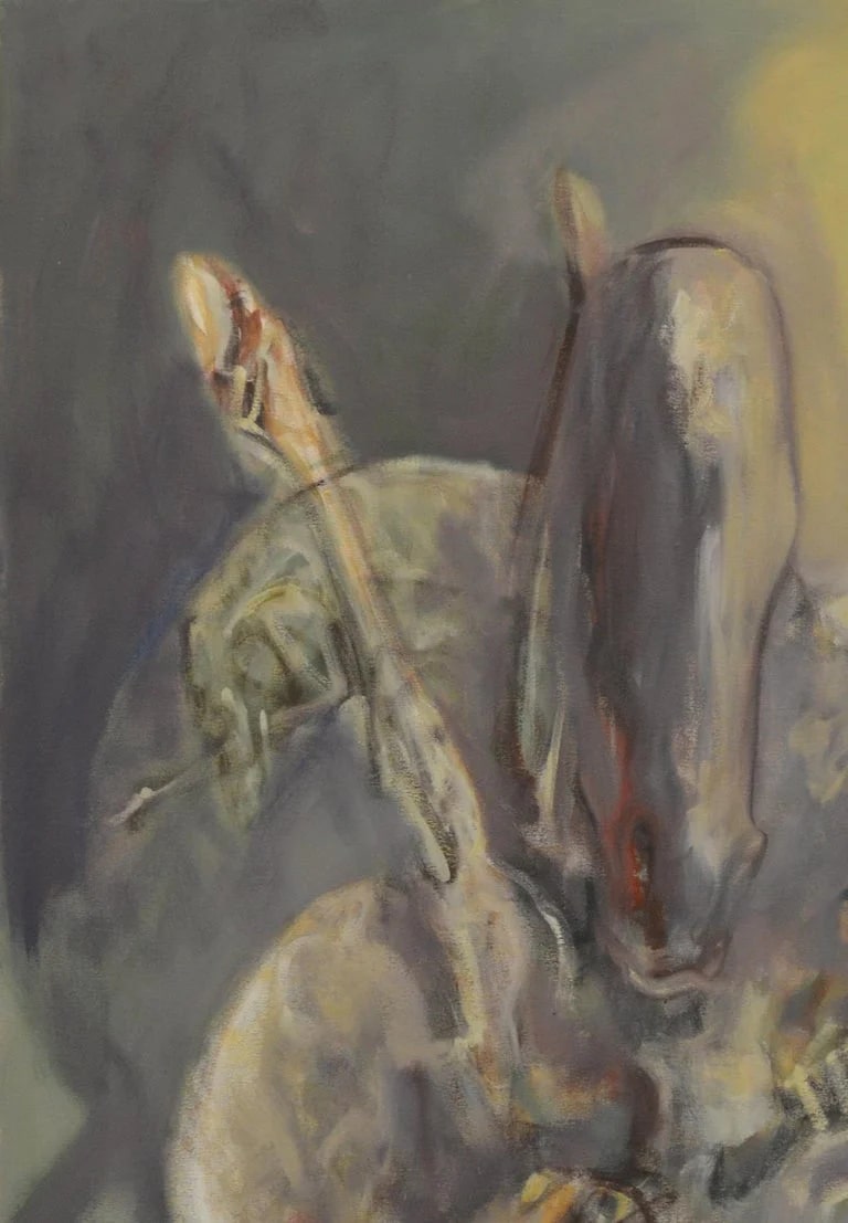 A large abstract oil on canvas painting titled " The birth of Memory" by the contemporary artist Igor Bogojevic ( Montenegro Born in 1980 ). The Painting features horses which has been Igor's signature work since the Start of his career. In a green and grey tone, this unique work of art is a conversation piece and an elegant and unique modern wall art . The art work comes with a certificate of authenticity directly by the artist.