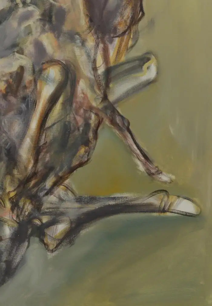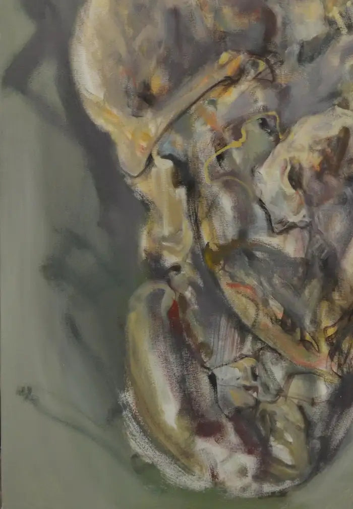 A large abstract oil on canvas painting titled " The birth of Memory" by the contemporary artist Igor Bogojevic ( Montenegro Born in 1980 ). The Painting features horses which has been Igor's signature work since the Start of his career. In a green and grey tone, this unique work of art is a conversation piece and an elegant and unique modern wall art . The art work comes with a certificate of authenticity directly by the artist.