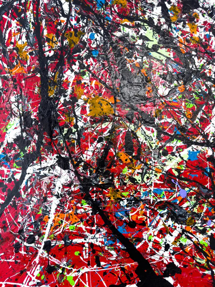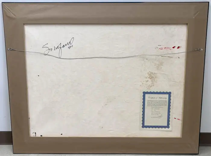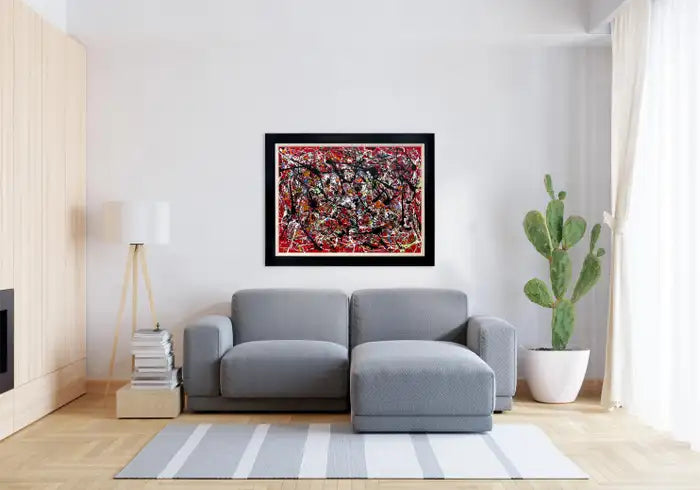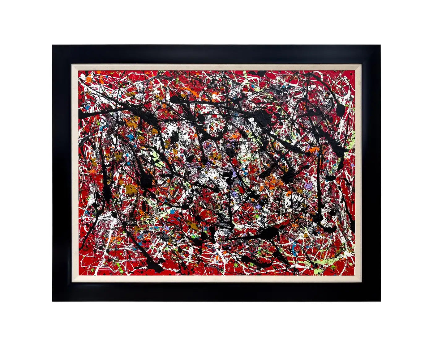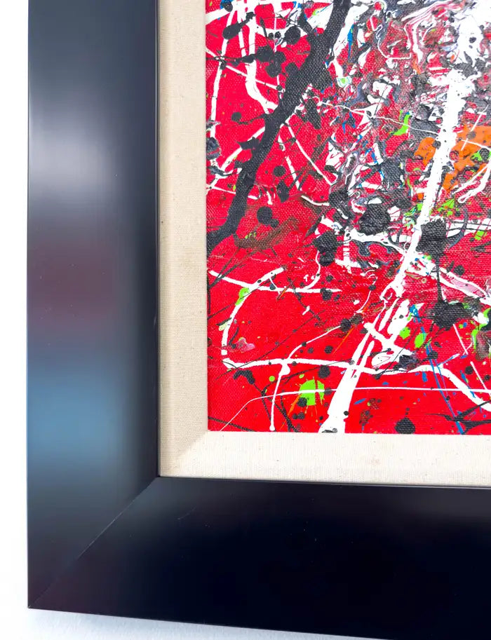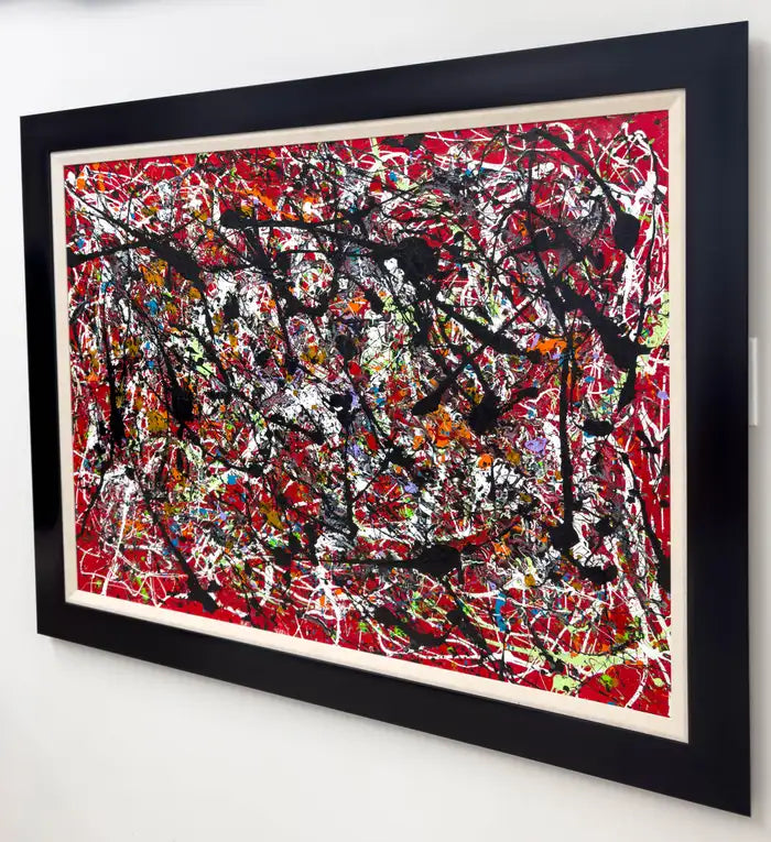 Framed in a sleek black border that contrasts with the vibrancy within, this artwork stands as a bold and unapologetic statement, representative of the artist’s mastery of abstract expression. It is a testament to Schofield’s ability to channel emotion into a visual language that transcends conventional form and invites subjective interpretation.