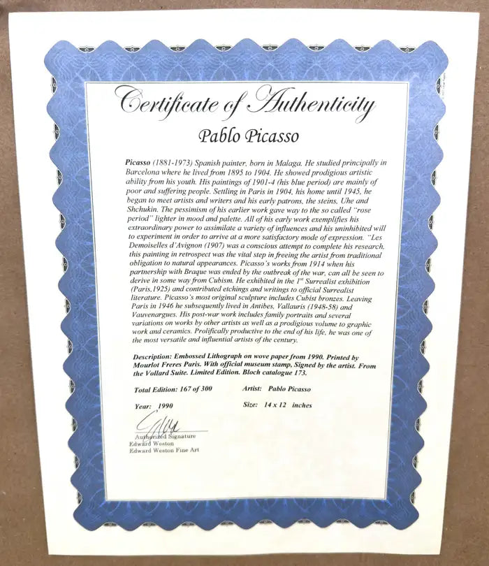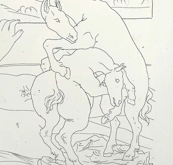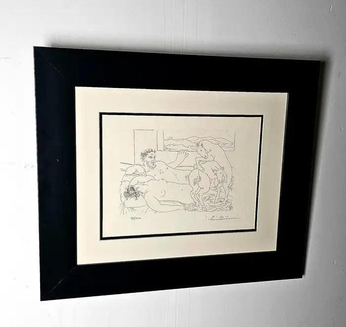 The "Suite Vollard" comprises 100 etchings that delve into themes such as the artist's studio, classical mythology, and the Minotaur, reflecting Picasso's neoclassical style of the early 1930s. These works were commissioned by the art dealer Ambroise Vollard, after whom the suite is named. The 1990-1992 lithographic reproductions were meticulously produced to capture the essence of Picasso's originals, offering collectors and art enthusiasts an opportunity to engage with these seminal pieces.