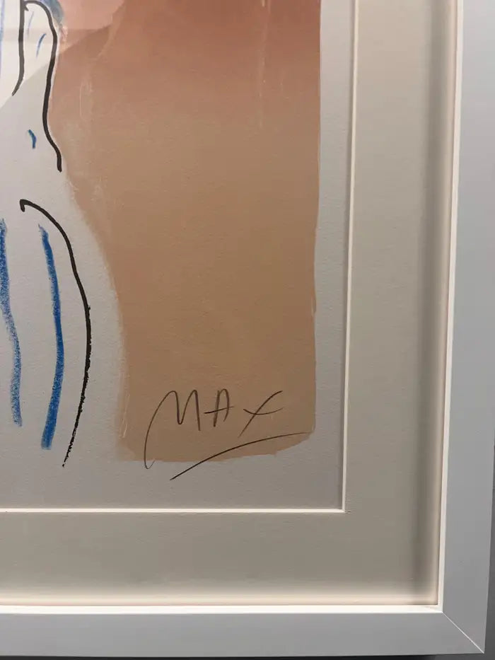 This silkscreen is hand-signed by the artist and individually numbered, marked as 143 of a limited edition of 165, underscoring its rarity and value. The high-quality craftsmanship and attention to detail reflect Max's mastery in the medium. It has been recently custom framed, enhancing its presentation and preserving its condition, making it a prized piece for collectors and admirers of contemporary art alike.