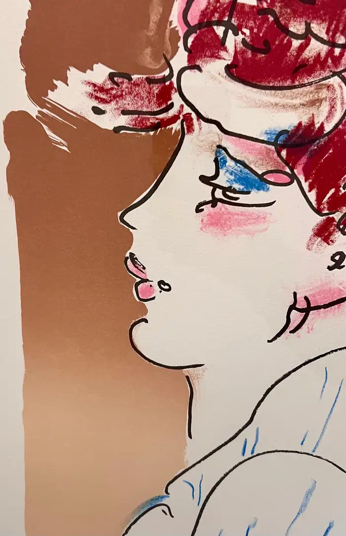 This exceptional piece, titled "Girl From Ibiza," is a distinguished color silkscreen created by the iconic New York School and Pop Artist, Peter Max ( German, American b 1937). Rendered on heavy art paper, the work captures Max's vibrant and expressive style, characterized by fluid lines, bold hues, and a dynamic interplay of contrast. The subject, a striking figure with distinctive features and rich auburn tones, exudes an air of intrigue and sophistication, blending figurative art with the vivid, avant-garde aesthetic Max is renowned for.