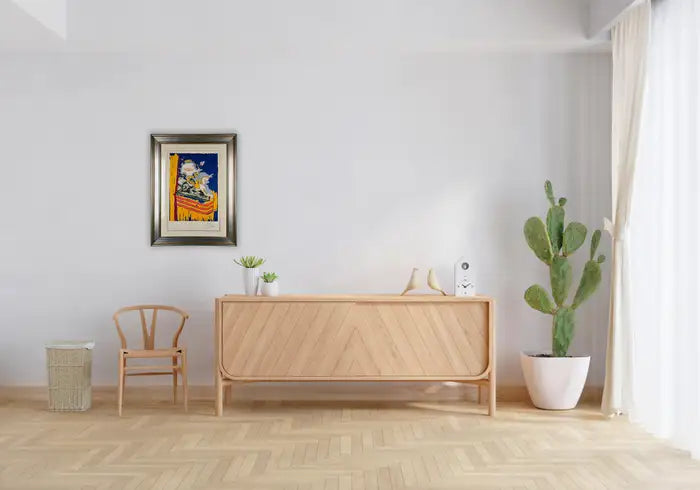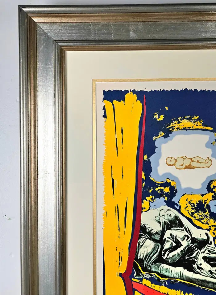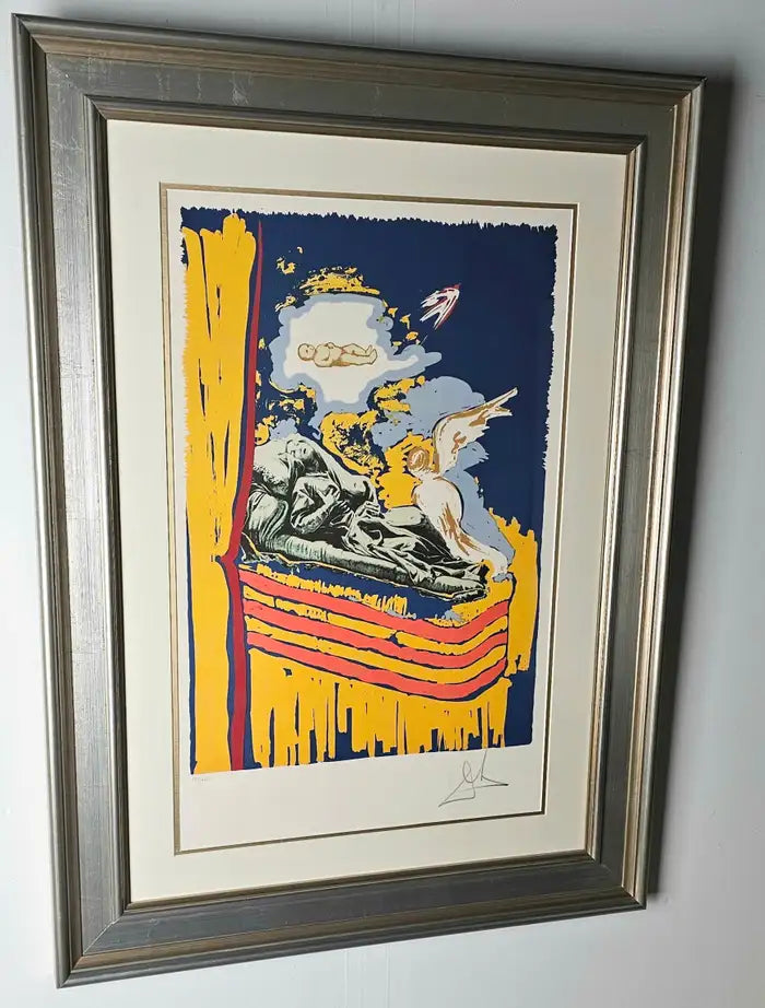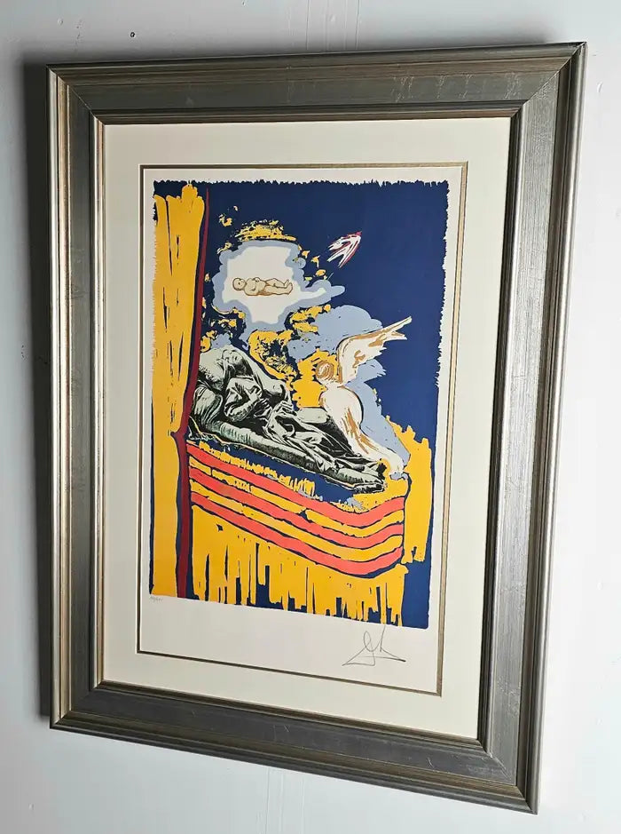 This lithograph is framed in a fine custom frame that complements its historical significance. Accompanied by a Certificate of Authenticity, it embodies the essence of Dalí’s exploration of divine and human themes through surreal, imaginative lenses.