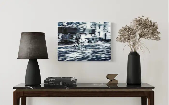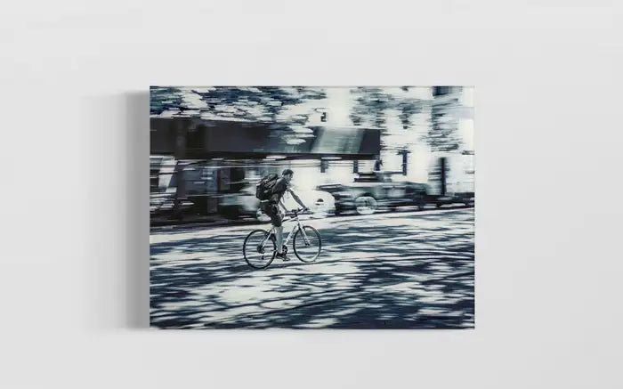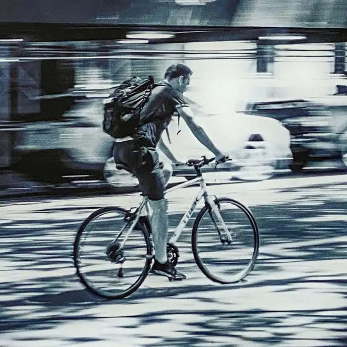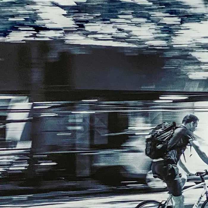 Urban Expressionist Photography Titled "Hermes" of Man on a Bicycle in NYC 2010s