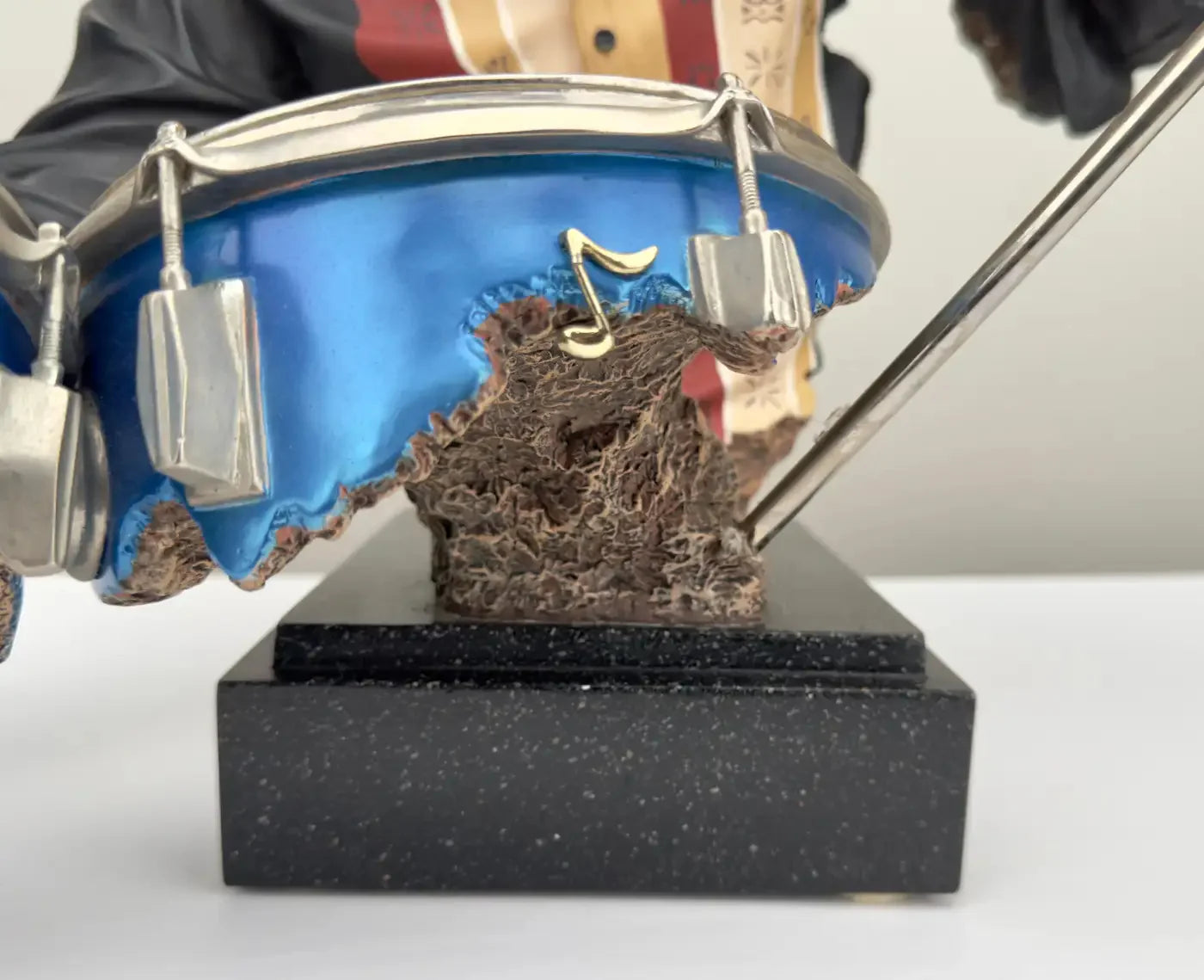 The exquisite allure of the All That Jazz collection lies in its profound ability to harmonize rhythm and soul.Through a skillful invasion of solid forms with delicate voids and evocative gaps, the artists employ negative space as a poignant tool, crafting a symphony of mood, movement, and emotion that resonates deeply within each piece. The drummer sculpture is an impressive collectible art piece especially by art and music lovers.