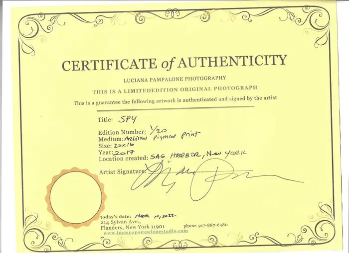 Luciana Pampalone spy 20 by 16, 2017, Archival pigment print 1/20 Dimensions: Framed 25" W x 19.25" H x 1.5" D Unframed 20" by 16"